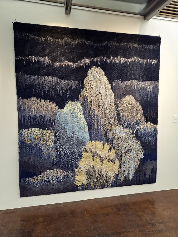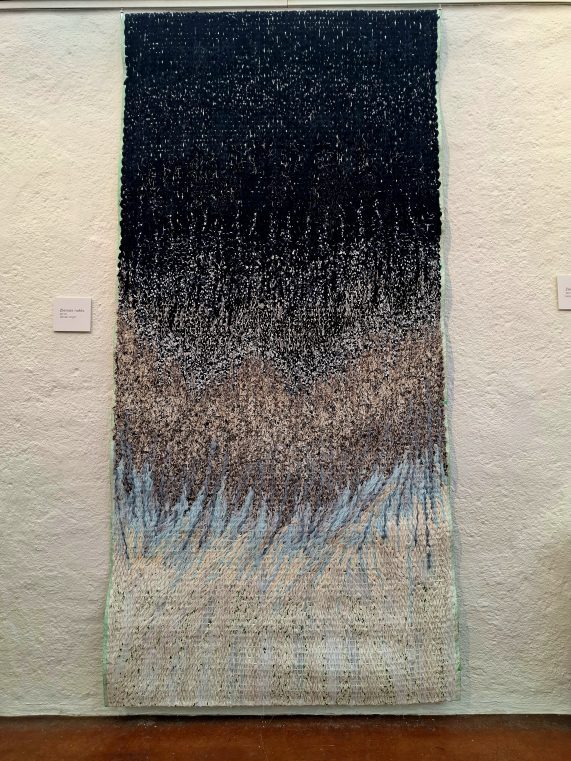 Jelgavas Svētās Trīsvienības baznīcas torņa izstāžu zālē skatāmas tekstila noskaņu gleznas jelgavnieces, muzeja mākslinieces Mārītes Leimanes personālizstādē “Auduma pārvērtības”.