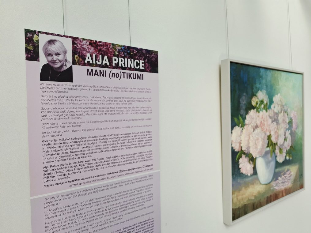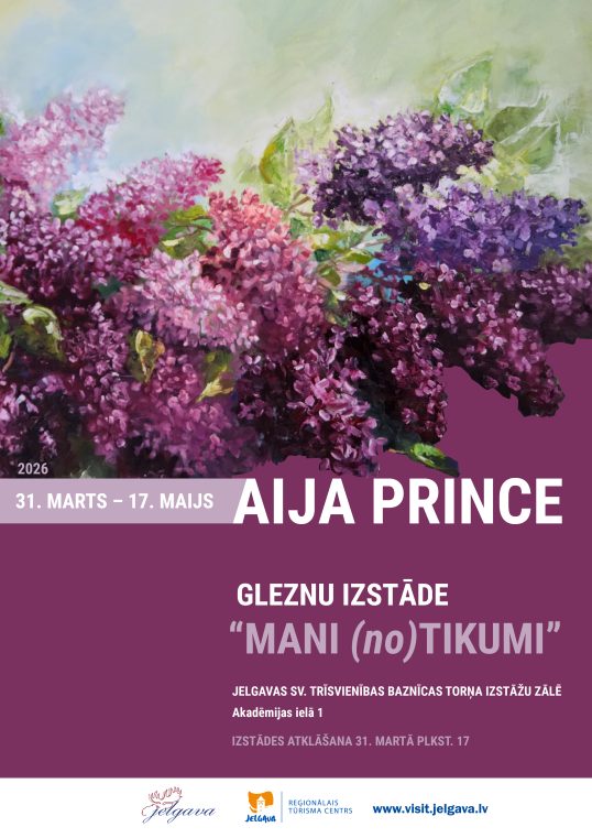 No 31. marta Jelgavas Svētās Trīsvienības baznīcas tornī skatāma gleznotājas Aijas Princes personālizstāde “Mani (no)tikumi”. Izstādē skatāmi jaunākie mākslinieces darbi, kas tapuši pēdējo trīs gadu laikā, iedvesmojoties no dabā piedzīvotā – laivojot pa upēm, pastaigājoties gar jūru vai klausoties agrā rīta klusumā dārzā. Izstādes atklāšana un tikšanās ar mākslinieci šodien, 31. martā, pulksten 17.