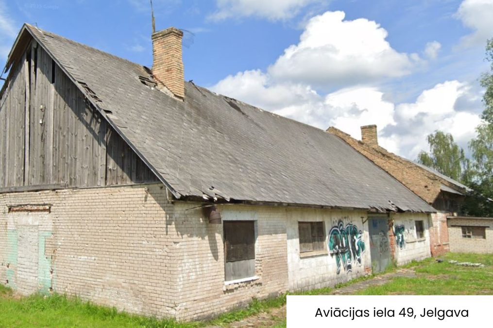 • Aviācijas iela 49, Jelgava – noliktava (311,80 m²), darbnīca (210,10 m²) un zemes vienība 0,2818 hektāri. Nosacītā sākuma cena: 46 000 eiro,