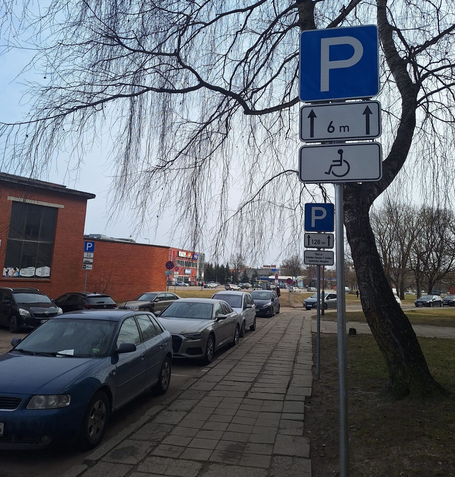 Īpašumā Māras ielā 1D uzstādītas ceļa zīmes “Stāvvieta” ar papildzīmi “Personām ar invaliditāti”.