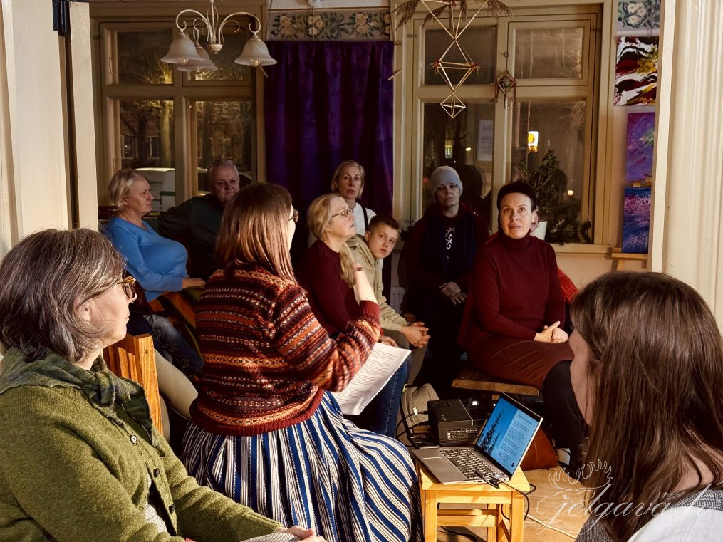 Rosība bija visā Vecpilsētas ielas kvartālā! Jelgavas Vecpilsētas mājā aizrautīgi darbojās budēļu masku un ziemas saulgriežu rotājumu darbnīcas, kā arī viesiem bija iespēja izstaigāt mājas ekspozīciju. Savukārt pagalmā ikviens varēja nobildēties Ziemassvētku noskaņās iekārtotajā foto stūrītī un nosūtīt vēstuli ar Vecīša pastu. Dzīvesziņas un arodu sētas Keramikas darbnīcā bija atvērta ķistu darbnīca. Audēju darbnīcā apmeklētāji varēja ielūkoties nākotnē, lejot parafīna laimītes, bet latvisko tradīciju cienītāji – klausīties folkloristes un latviskās dzīvesziņas pazinējas Baibas Ērgles stāstījumā par senču ieražām laika īsināšanā gada tumšajā periodā un iepazīt ziemas saulgriežu sagaidīšanas paražās. Tradicionāliem ziemas saulgriežu dekoriem izrotātajā Dzīvesziņas un arodu sētas pagalmā gādīgās Austras rakstu saimnieces cienāja ar kāpostu zupu, kas gatavota turpat uz ugunskura, pelēkajiem zirņiem un gardām piparkūkām. Tāpat pagalmā pasākuma apmeklētājiem bija iespēja Foto kastē iemūžināt skaisto mirkli un uzreiz saņemt gatavos attēlus.