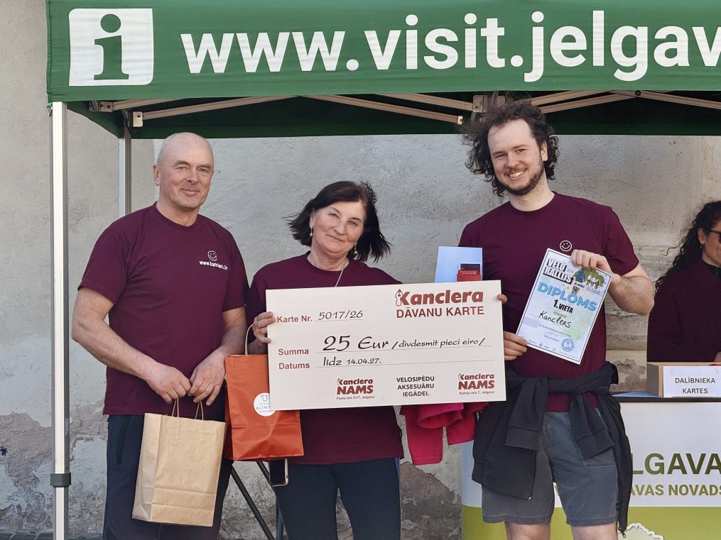 Pēc saņemto atbilžu izvērtēšanas un operatīvi saskaitot komandu iegūtos punktus, pulksten 15.30 tika apbalvoti uzvarētāji: pirmās vietas ieguvēji – komanda “Kanclers”, otro vietu izcīnīja komanda “Senie”, bet trešajā vietā komanda “Nākotnes surikāti”. Pareizās atbildes un visu komandu rezultāti tiks publicēti vietnē https://visit.jelgava.lv/, kā arī visit.jelgava sociālajos tīklos, līdz 21. aprīlim.