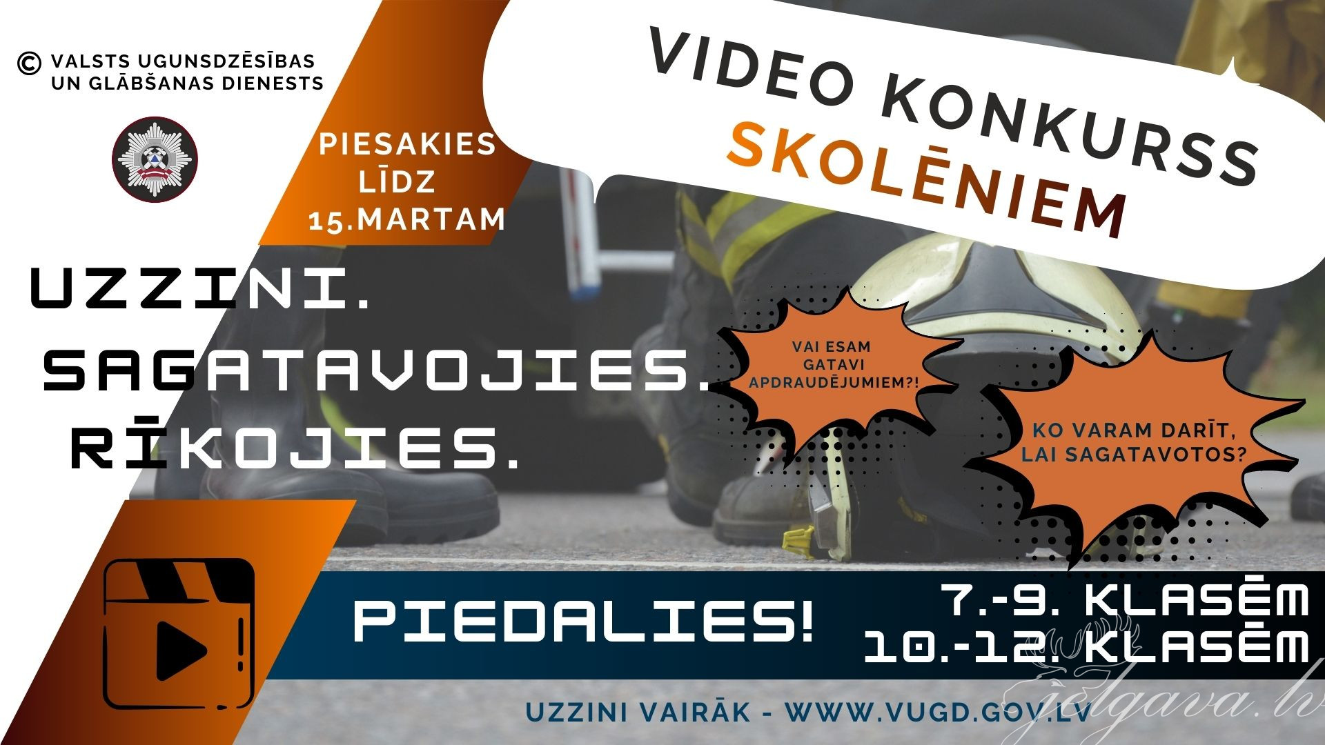 Valsts ugunsdzēsības un glābšanas dienests (VUGD) rīko video konkursu 7. līdz 12. klašu skolēniem “Uzzini. Sagatavojies. Rīkojies.”. Konkurss tiek organizēts, lai skolēnu vidū aktualizētu civilās aizsardzības jautājumus un stiprinātu jauniešu noturību pret dažādiem dabas un cilvēku izraisītiem negadījumiem.