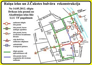 Driksas ielas posms 14. maijā tiks slēgts Jāņa Čakstes bulvāra rekonstrukcijas darbu gaitā.
