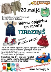 20. maijā no pulksten 10 līdz 14 ģimenes restorānā «Hercogs» notiks kārtējais bērnu apģērbu un mantu tirdziņš. Pieteikšanās – līdz 14. maijam.