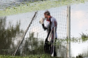 jācīnās, dažviet atgādināja dubļu vannu, jo vakar uzlijušais lietus