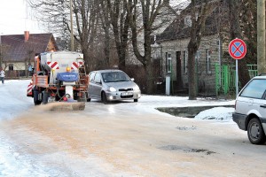 pretslīdes materiālu kaisīšana. «Ielu uzturēšanas darbus ziemas