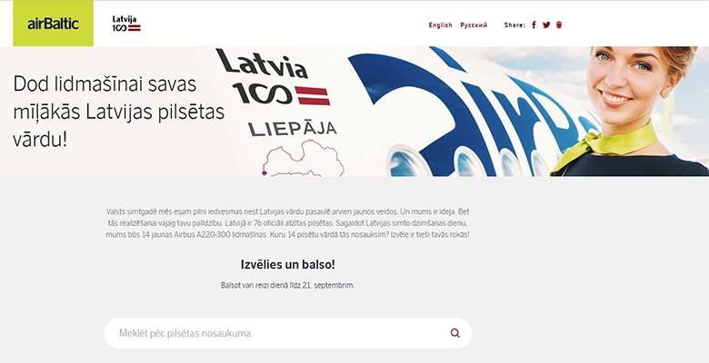 Portāls www.jelgavasvestnesis.lv jau rakstīja, ka nobalsot konkursā iespējams par vienu no 76 Latvijas pilsētām. 14 pilsētu nosaukumu vārdā, kuras saņems lielāko balsu skaitu, tiks nosauktas jaunās «airBaltic» «Airbus A220-300» lidmašīnas.