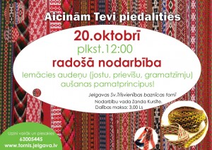 Sestdien, 20. oktobrī, Jelgavas Svētās Trīsvienības baznīcas tornī notiks radošā nodarbība, kur kopā ar pasniedzēju un latviešu tautas tradīciju zinātāju Zandu Kursīti būs iespējams iemācīties jostu un grāmatzīmju (audeņu) aušanas pamatprincipus un izvēlēto arī pašiem noaust.