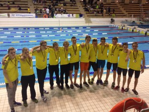 Vīriešu absolūtā vērtējumā stafetēs 4×50 metri brasā tika uzrādīti pilnīgi vienādi laiki cīņā par 1. vietu ar Leipcigas komandu un ar zelta medaļām tika apbalvotas abas komandas. Mūsu komandā peldēja V.Šinkus, A.Naumovs, Kirils Kuskovs un Jevgenijs Boicovs.