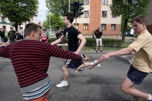 Sporta servisa centra projektu vadītāja Guna Trukšāne informē, ka Nordea Rīgas maratona treniņš iesildīs pilsētas un novada skolu jauniešu maija stafeti «Skriesim kopā!», kurai starts tiks dots turpat Hercoga Jēkaba laukumā pulksten 10.45. «Aicinu ikvienu jelgavnieku un arī pilsētas viesus 4. maija rītā nestāvēt malā un piedalīties kopīgā pavasara iesildīšanās skrējienā Jelgavas pilsētas ielās. Skrējiena mērķis ir veicināt iedzīvotāju kopības sajūtu, veselību un prieku. Šogad ielu skrējienus veltām arī Latvijas Republikas Neatkarības deklarācijas pasludināšanas 20. gadadienai, kas ir nozīmīgs fakts mums visiem, tādēļ svinēsim svētkus, priecāsimies un skriesim kopā!» tā Juris Kaminskis, Sporta servisa centra direktors. Tomēr jo īpaši aicināti piedalīties iesildīšanās skrējienā ir stafetes dalībnieki pirms lielā starta.
