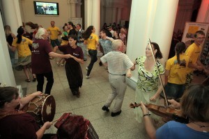 Kamēr daļa sniedza dokumentus vai stāvēja rindā, daļa topošo studentu izklaidējās kopā ar folkloras kopu «Dimzēns» un deju kolektīva «Skalbe» dejotājiem, foajē uzraujot dančus.