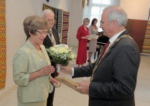 Dāvanā visi klātesošie Zelta kāzu pāri saņēma fotogrāfiju, kurā pāris fotografējās kopā ar A.Rāviņu un viņa kundzi Ritu. Jāpiebilst, ka foto tapa īsi pirms pasākuma un bija kā liels pārsteigums, kuru pilsētas «zelta» ģimenes teicās nolikt goda vietā.