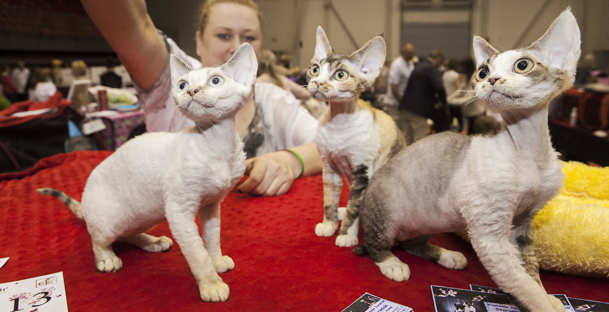Savukārt Anastasija Bariševa Jelgavas kaķu izstādē piedalās jau piekto gadu. Viņai pieder kaķu audzētava «RigaVipCattery», kurā šobrīd ir ap 30 mīluļu. Uz izstādi Jelgavā no audzētavas šodien ceļojuši gan meinkūni, gan Kanādas sfinksi. «Man kaķi ir kā bērni – katrs ir īpašs. Piemēram, Kanādas sfinksi ir kā mazuļi – viņiem nav spalvu, tādēļ katru dienu viņiem vajadzīga palīdzība, lai no austiņām, deguna un acīm iztīrītu putekļus, kuri sakrājas dienas laikā. Ir vēsturisks pieņēmums, ka sfinksi saistīti ar Ēģipti, un tiek lēsts, ka šai kaķu šķirnei ir īpašas aizsardzības un pat dziedniecības spējas,» stāsta runču saimniece. «Mājās esam daudzkārt pārliecinājušies – ja kādam kaut kas sāp, runcis atnāks un sēdēs tik ilgi, kamēr sāpes būs kliedētas,» tā viņa. Šāda mājas sarga – Kanādas sfinksa – cena ir no 700 līdz 1000 eiro. «Šiem kaķiem piemīt arī sava veida augstprātība – ja viņi vēlas iziet ārpus mājas, bet, piemēram, redz, ka zāle ir slapja, viņi šaubās, vai jāiet,» stāsta saimniece, papildinot, ka viņas mīlulis sfinkss tādās situācijās var uzlēkt uz muguras meinkūnam, lai tikai nevajadzētu saslapināt ķepas.