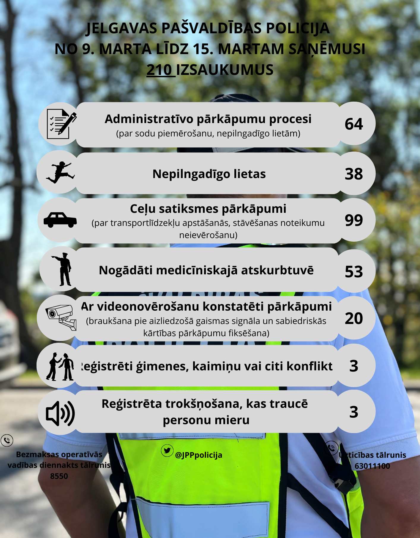 Jelgavas pilsētas pašvaldības policijas darba rezultāti no 09.03