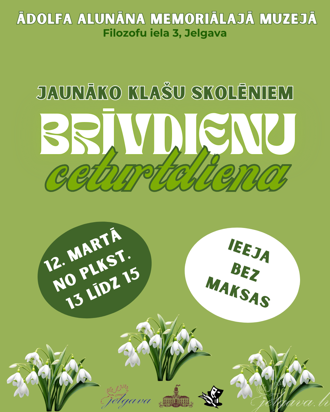 12.03. 13:00 - 15:00 | Ādolfa Alunāna memoriālajā muzejā, Filozofu ielā 3, Jelgavā |