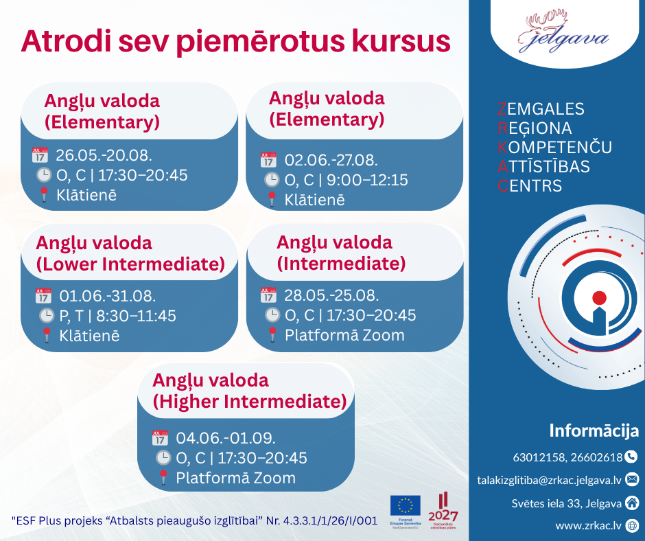 Kursi notiks no 28. maija līdz 25. augustam.