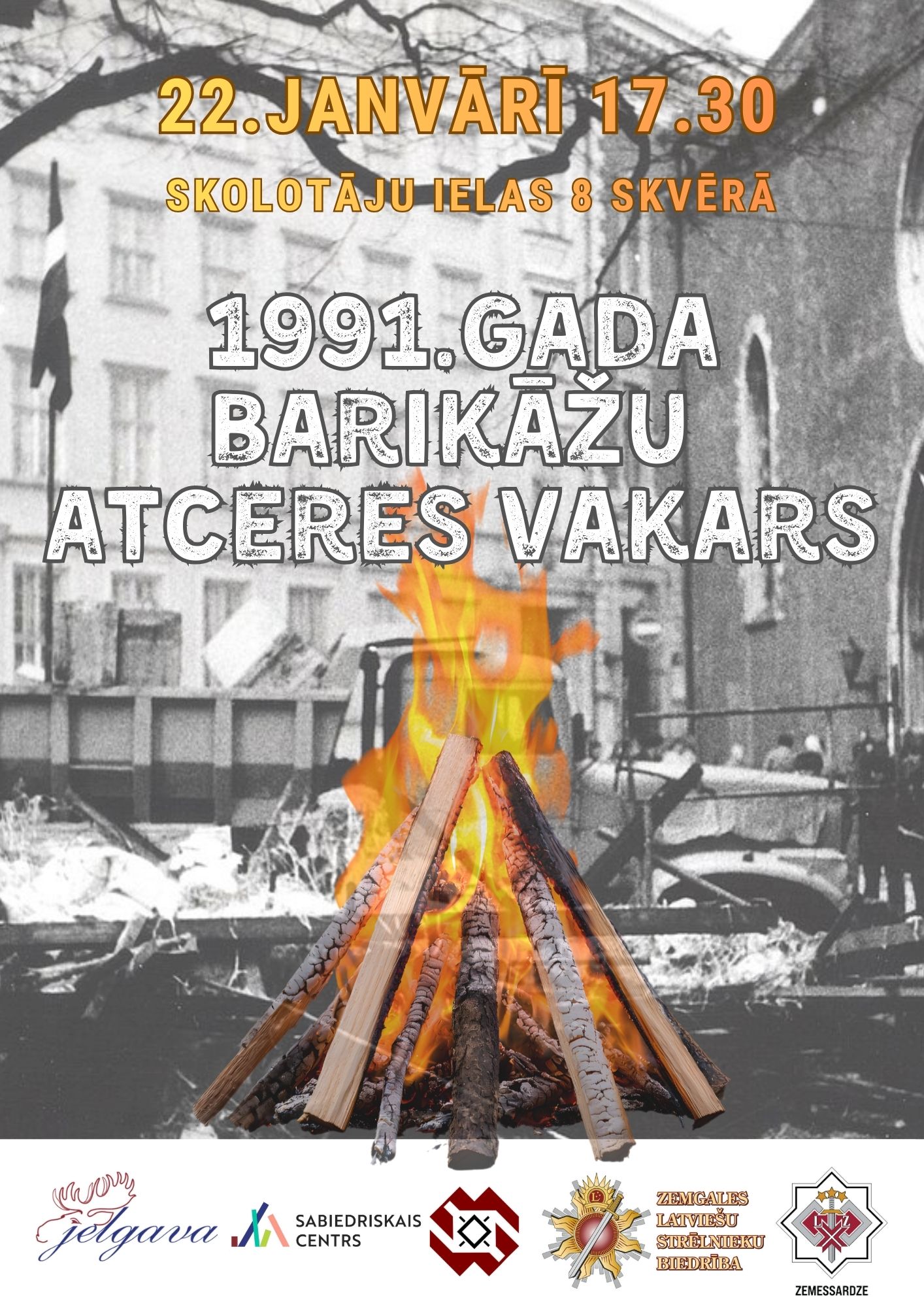 Lai saglabātu atmiņas par 1991.gada janvāra barikāžu notikumiem un iepazītu to dalībniekus, ceturtdien, 2026. gada 22. janvārī, no pulksten 17.30 līdz 19.30 jelgavnieki aicināti uz Barikāžu atceres pasākumu skvērā pie Jelgavas Sabiedriskā centra Skolotāju ielā 8. Pasākumu organizē Zemgales Latviešu strēlnieku biedrība sadarbībā ar Jelgavas Sabiedrisko centru.