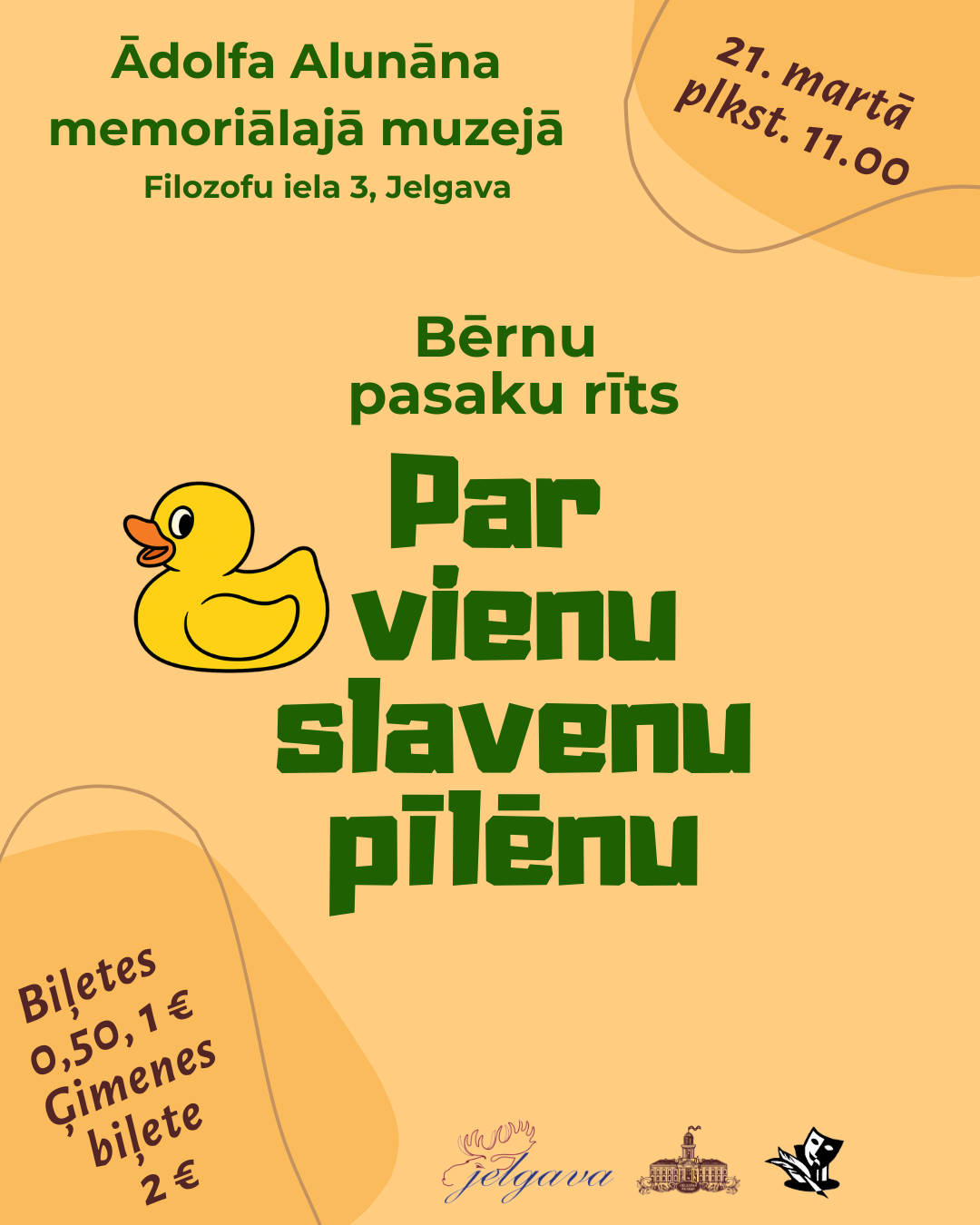 Vietu skaits ierobežots, iepriekš jāpiesakās pa tālruni 63021180. Biļešu cena – 0,50, 1,00 €, ģimenes biļete – 2 €.