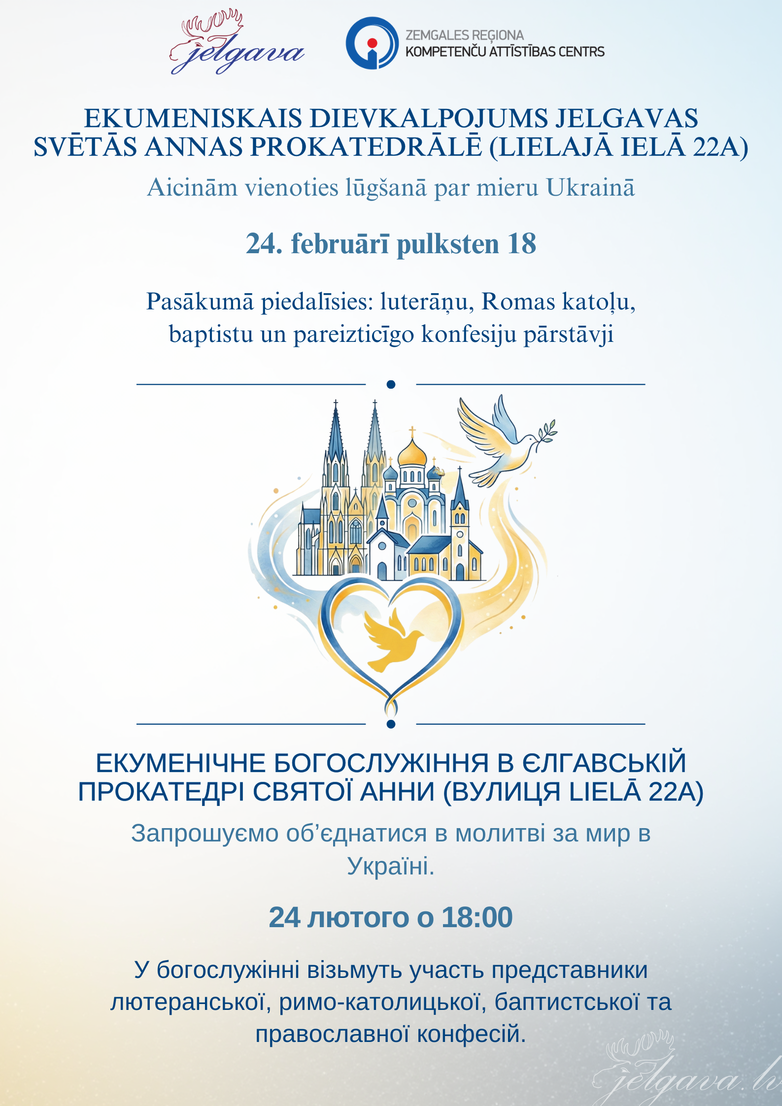 Ekumeniskais dievkalpojums Jelgavas Svētās Annas prokatedrālē, aizlūdzot par mieru Ukrainā