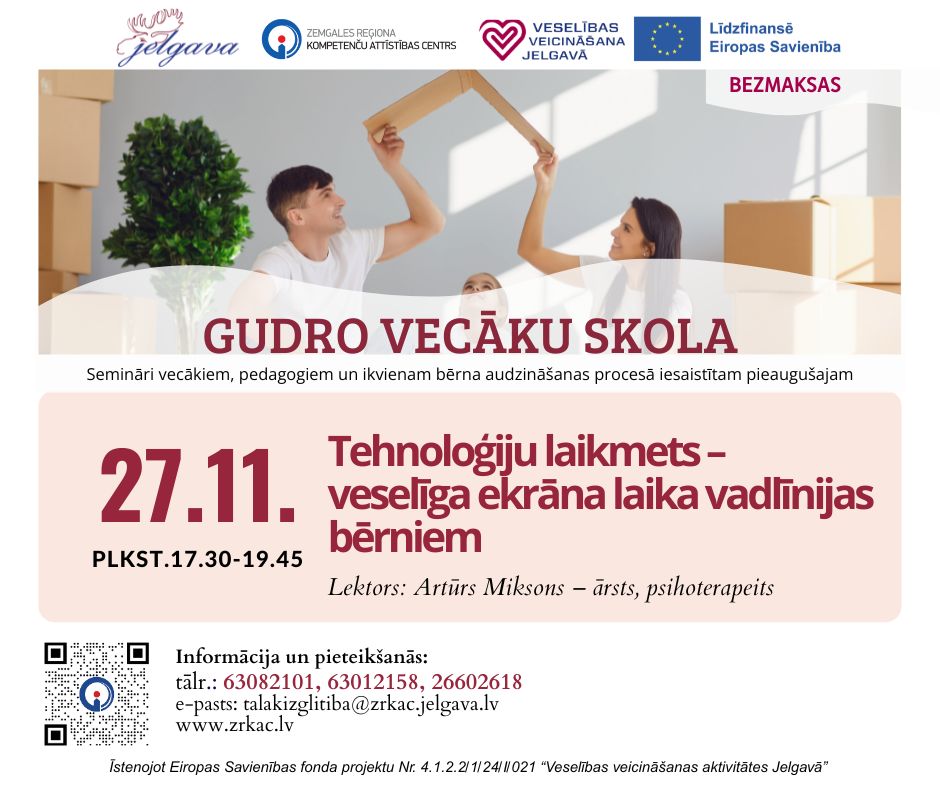 Gudro vecāku skolas seminārs “Tehnoloģiju laikmets – veselīga ekrāna laika vadlīnijas bērniem”