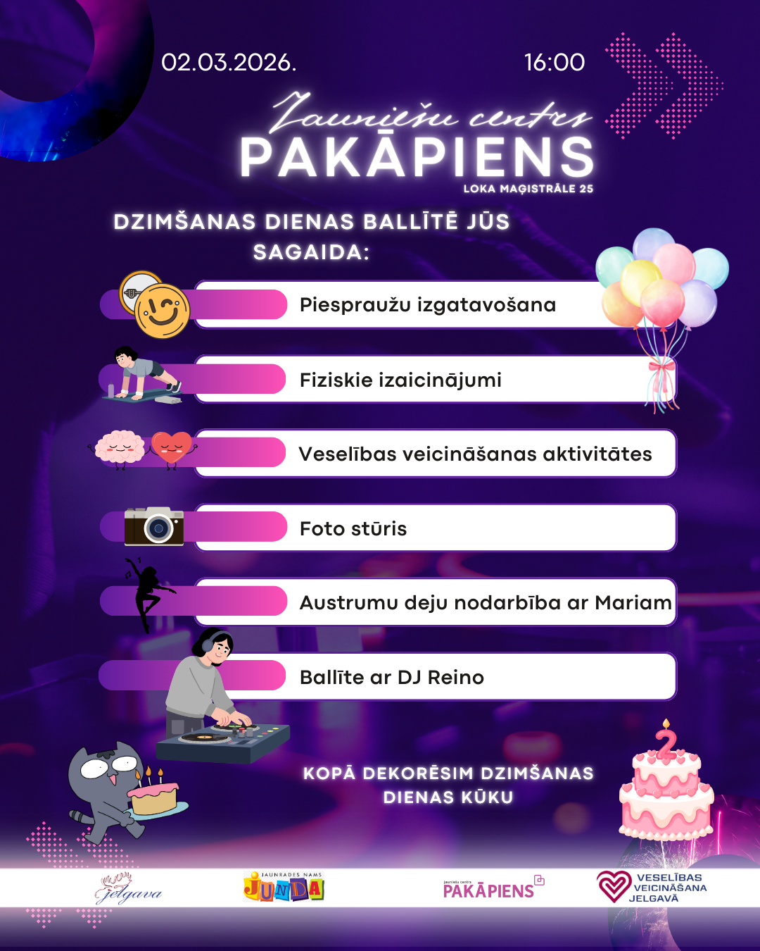 02.03. 16:00 | Jauniešu centrs "Pakāpiens", Loka maģistrāle 25, Jelgava