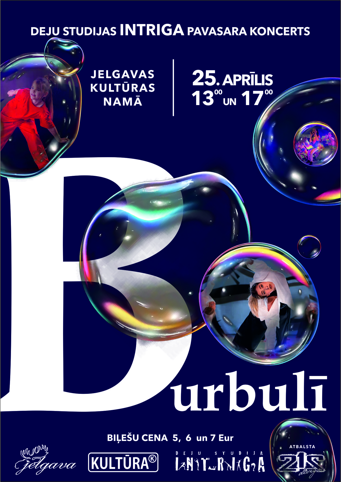 Pavasara koncerts “Burbulī”, kurā tiks izdejotas šajā sezonā radītās horeogrāfijas, kas kopā veido kustīgu stāstu par mūsu katra iekšējo pasauli un ikdienas burbuļiem, kuros dzīvojam – draugu lokā, skolā, interesēs un sociālo tīklu vidē. Mākslinieciskā vadītāja Inga Ose. Biļetes pieejamas BP. Biļetes tirgošanā no 7. aprīļa.
