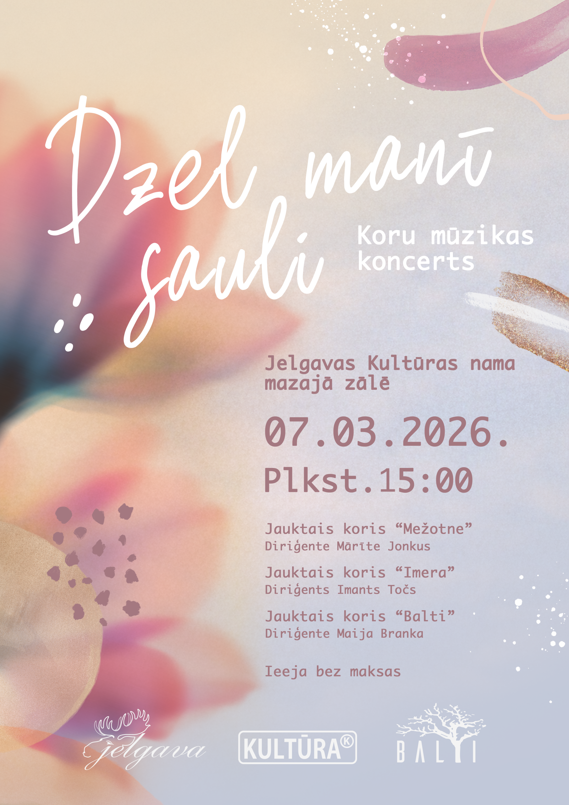 07.03. 15:00 | Kultūras nams, Mazā zāle, Krišjāņa Barona iela 6, Jelgava | Ieeja bez maksas