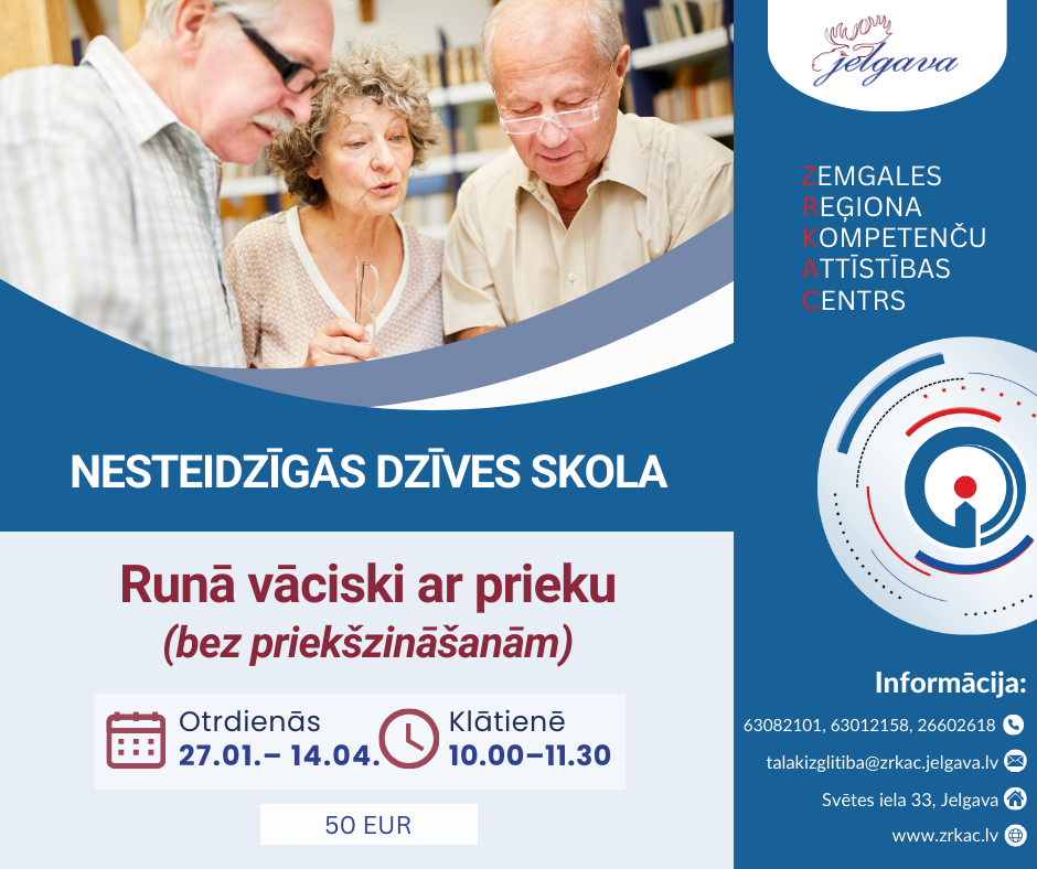 no 27.01. līdz 14.04. 10:00 - 11:30 | Zemgales reģiona Kompetenču attīstības centrs, Svētes iela 33, Jelgava |