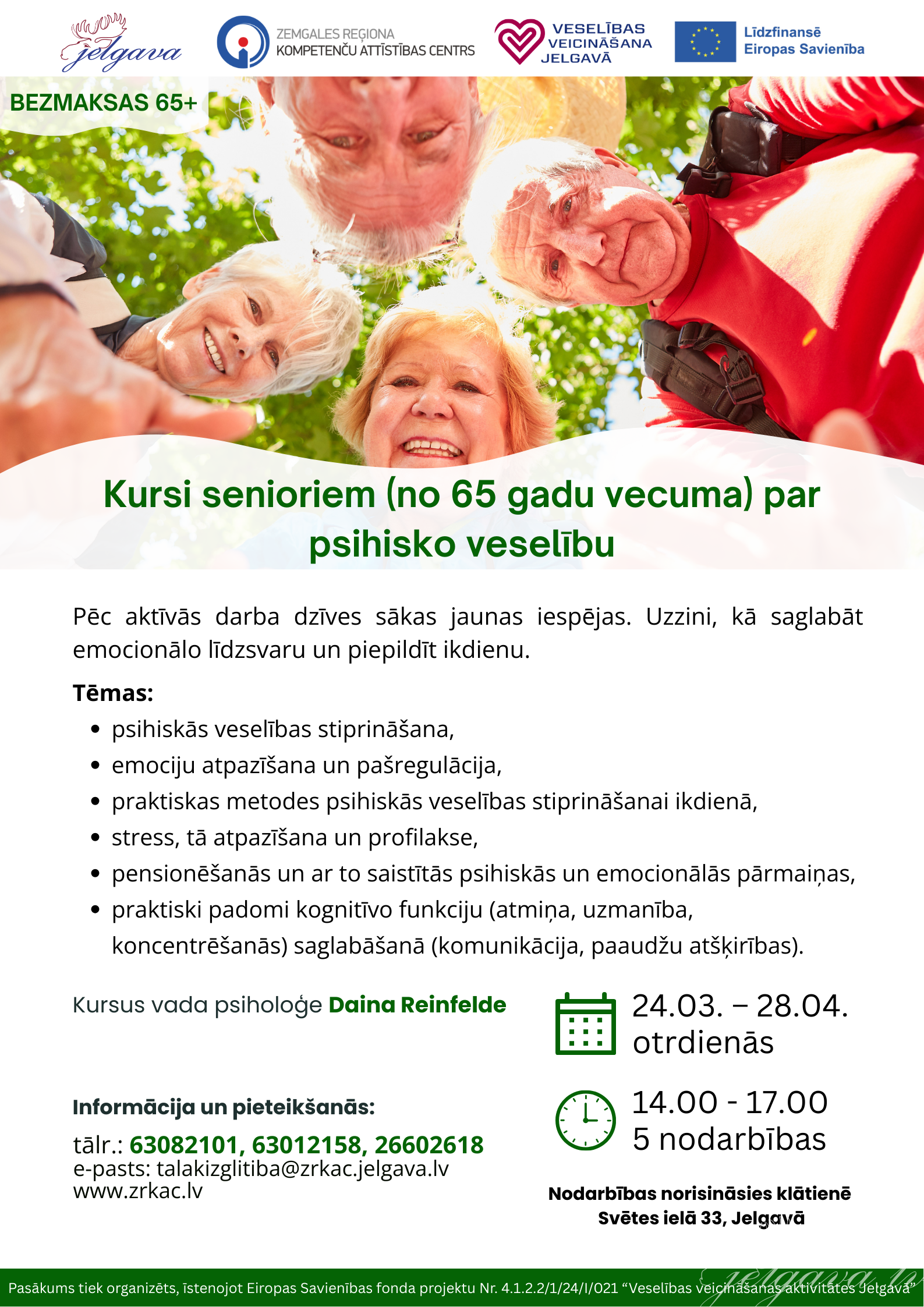 Kursi senioriem (no 65 gadu vecuma) par psihisko veselību