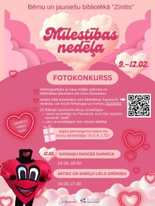 No 9. līdz 12. februārim Bērnu un jauniešu bibliotēkā “Zinītis” norisināsies Mīlestības nedēļa, kas priecēs gan bērnus, gan jauniešus ar radošām aktivitātēm un iespēju piedalīties fotokonkursā.