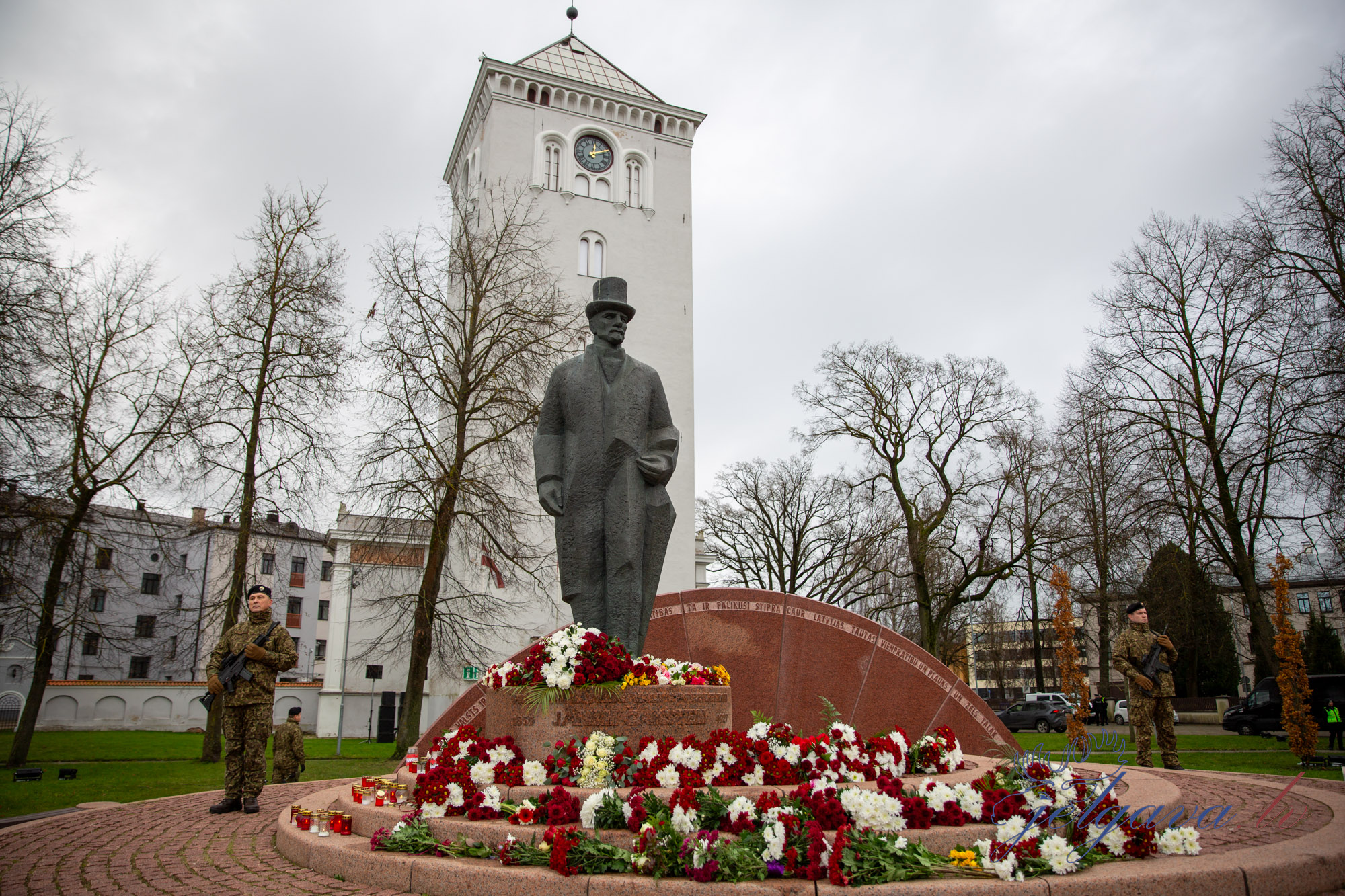 Ziedu nolikšana pie J. Čakstes pieminekļa