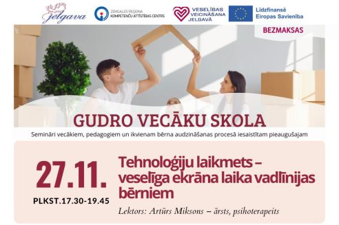 Gudro vecāku skolas seminārs “Tehnoloģiju laikmets – veselīga ekrāna laika vadlīnijas bērniem”
