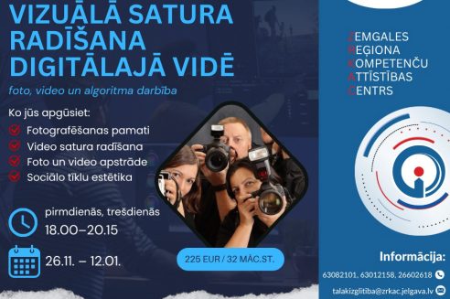 Kursi “Vizuālā satura radīšana digitālajā vidē: foto, video un algoritma darbība”