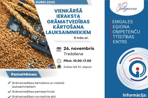 Kursi “Vienkāršā ieraksta grāmatvedības kārtošana lauksaimniekiem”