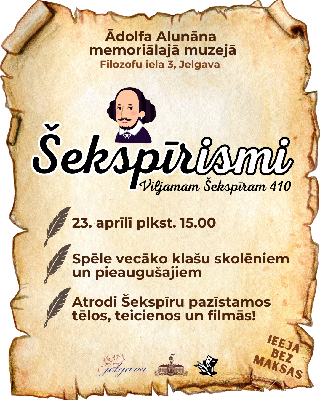 Pasākums veltīts Šekspīra 410. dzimšanas dienai.