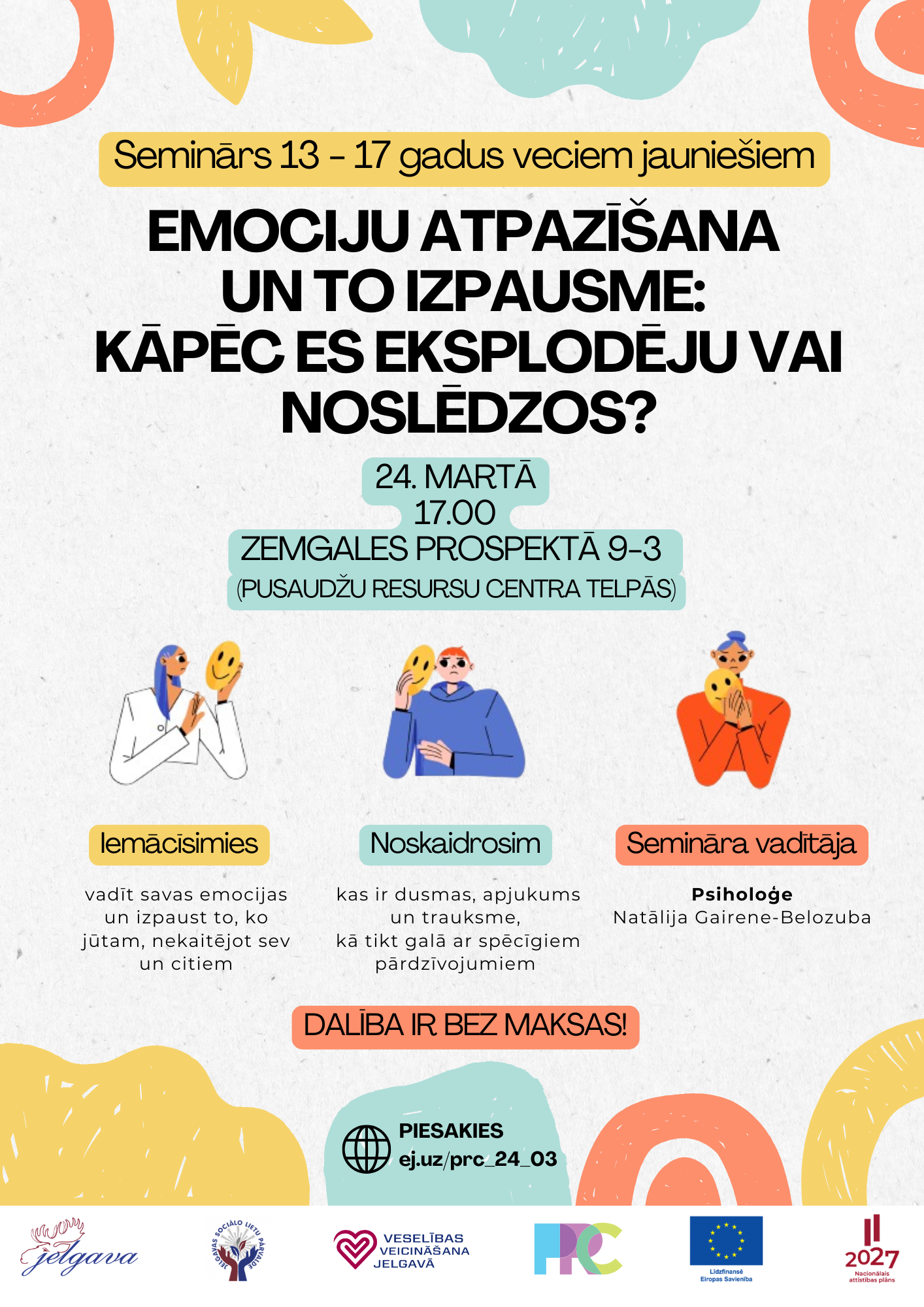 Seminārs jauniešiem “Emociju atpazīšana un to izpausme: Kāpēs es eksplodēju vai noslēzos?”