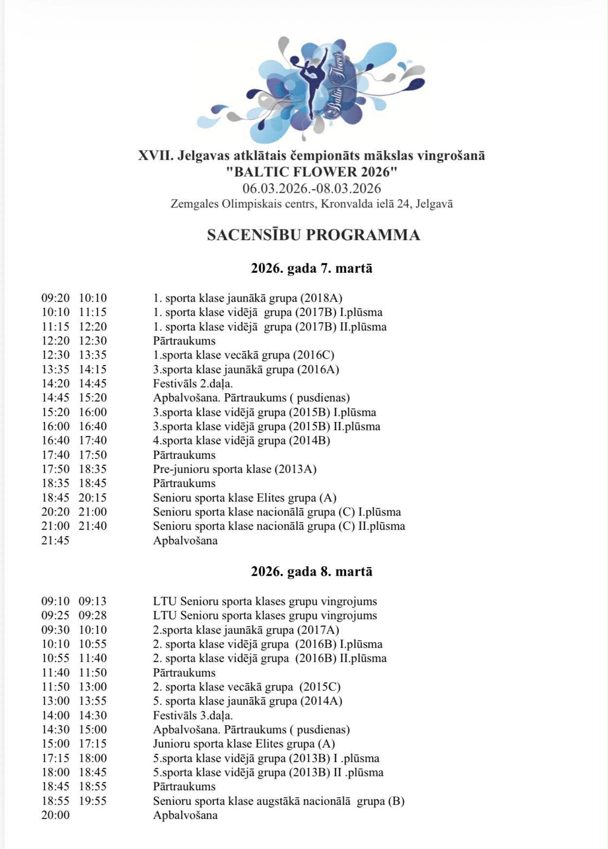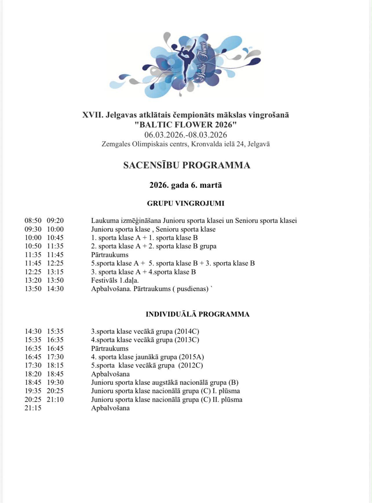 XVII Jelgavas atklātais čempionāts individuālajā programmā un Jelgavas čempionāts grupu vingrojumos mākslas vingrošanā “Baltic Flower 2026”