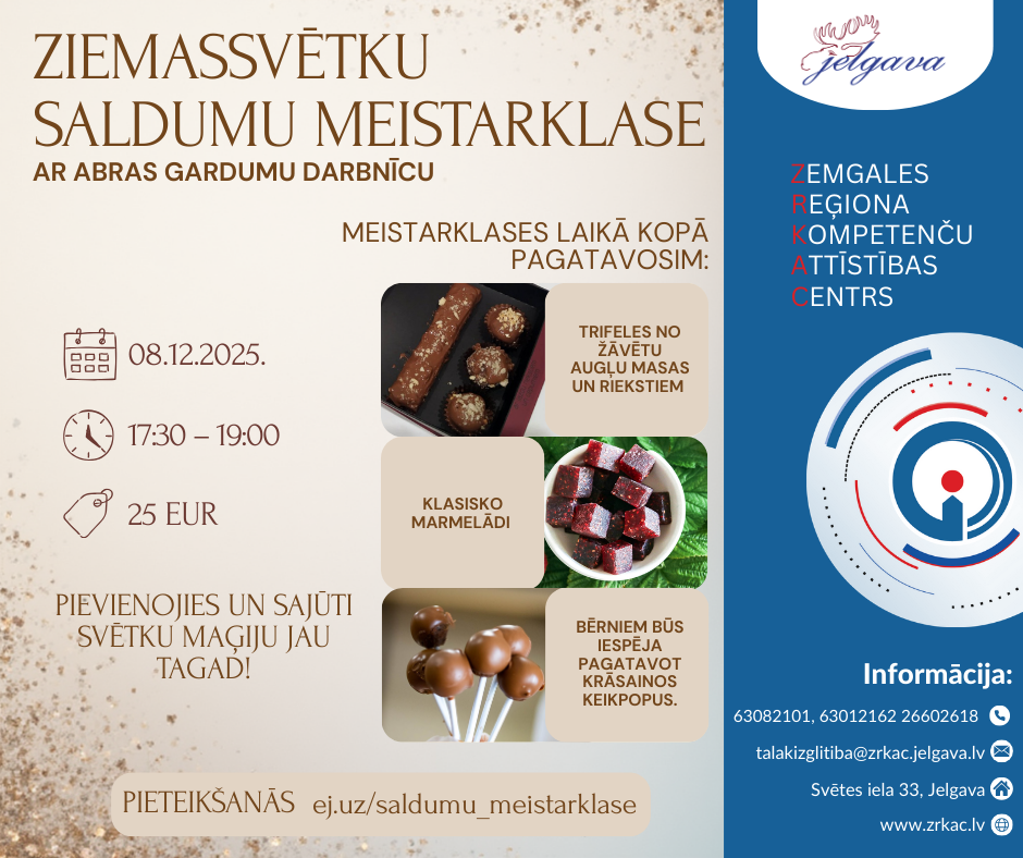 08.12. 17:30 - 19:00 | Zemgales reģiona Kompetenču attīstības centrs, Svētes iela 33, Jelgava |